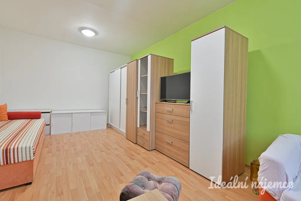 Byt se nabízí vybavený. Kuchyně disponuje lednicí, pračkou, troubou, digestoří a jídelním stolem se židlemi. Druhá místnost je vybavena skříněmi s dostatkem úložného prostoru, sedací soupravou a postelí. V koupelně je vana, umyvadlo a toaleta.