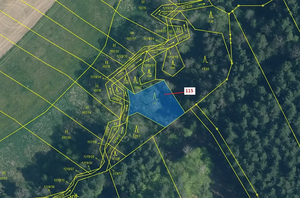 Lesní pozemek o výměře 590 m2, parcelní číslo 115, podíl 1/1, katastrální území Bukvice u Trhových Svinů, obec Trhové Sviny, obec s rozšířenou působností Trhové Sviny, okres České Budějovice, Jihočeský kraj.