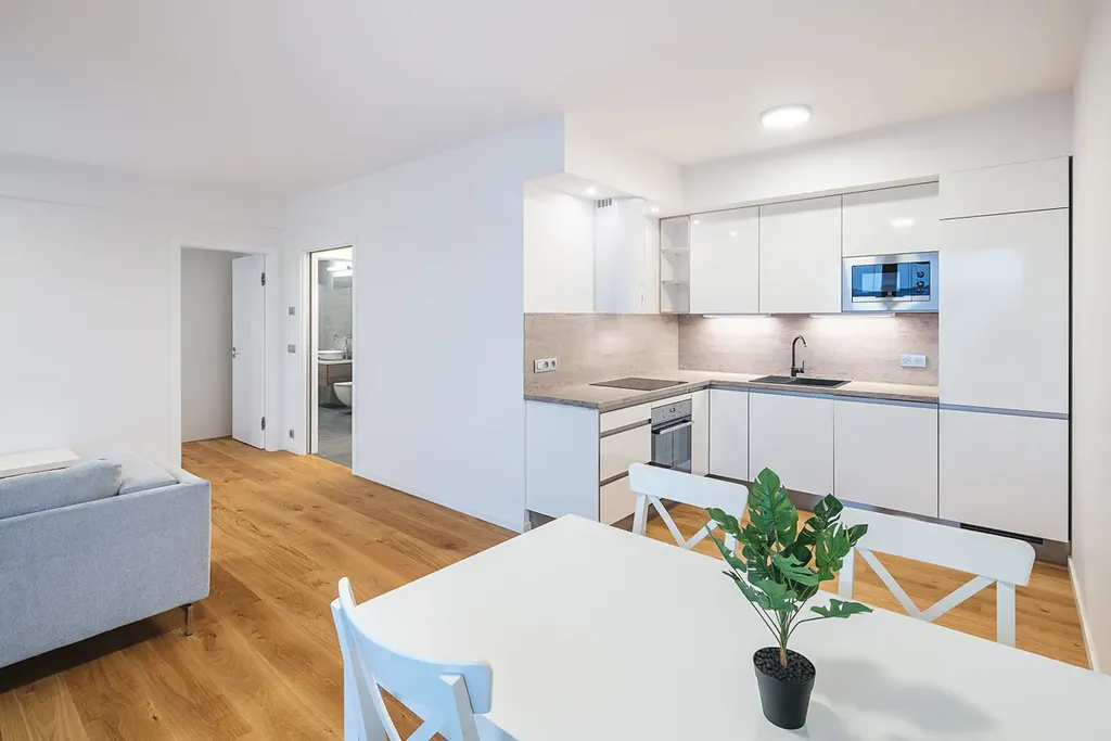 Pronájem krásného bytu 2+kk s podlahovou plochou 61,9 m2 a terasou 5,7 m2 ve 4.NP jednoho z nejhezčích projektů v Praze – River Watch II, v ul. Menclova, Praha 8 – Libeň.