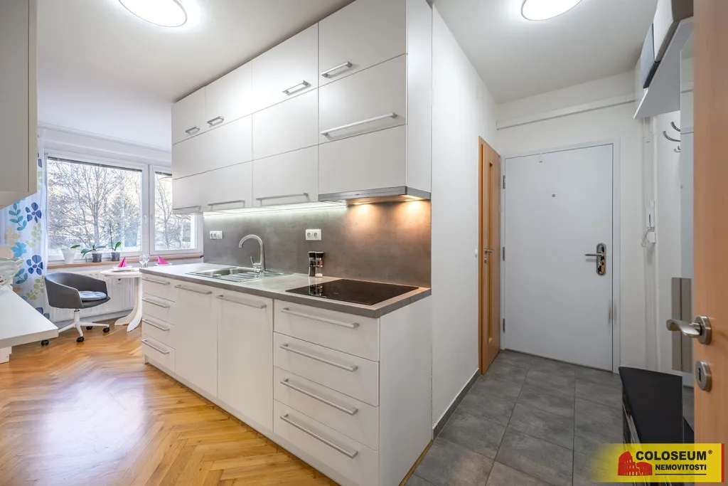 Nová kuchyňská linka včetně indukční varné desky, vestavěné trouby, mikrovlnné trouby a myčky. Nové obložkové interiérové dveře, bezpečnostní vstupní protipožární dveře s hlukovou izolací. Nová dlažba v předsíni i lodžii.