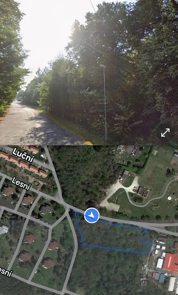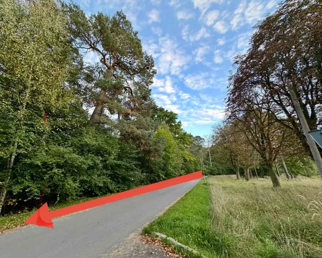 Pozemek leží na okraji zástavby, v místě, kde komunikace končí, a je ze všech stran obklopen zelení a lesními porosty. Přesto nabízí výbornou dopravní dostupnost: