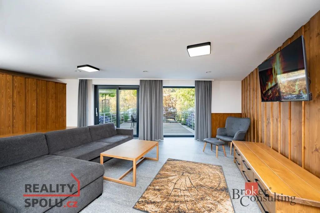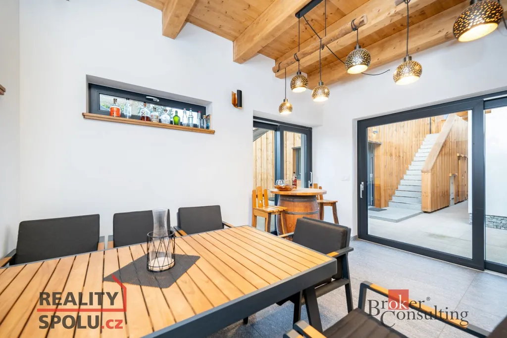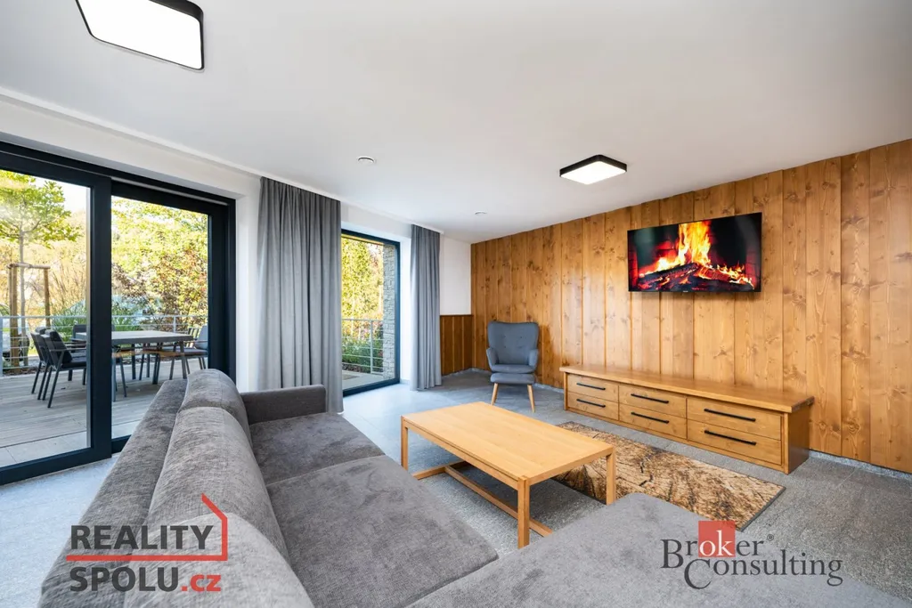 Tato luxusní nemovitost nabízí skvělou možnost kombinace soukromého bydlení a podnikání. Díky třem samostatným apartmánům lze jednotky pronajímat a využívat výhod sezónních výnosů.
