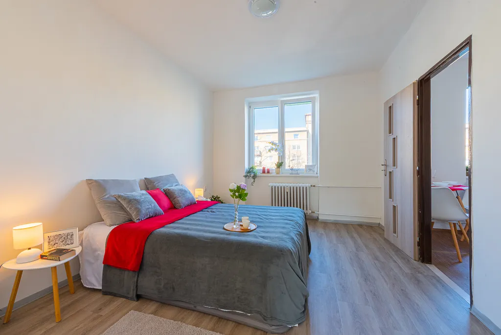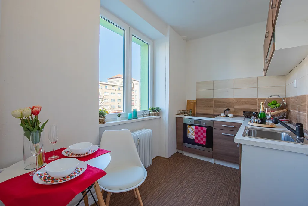 Nabízíme k pronájmu krásný byt 2+1 po částečné rekonstrukci. Byt se nachází ve 2 nadzemním podlaží (1. patře) panelového domu s výtahem a skládá se z obývacího pokoje, ložnice, kuchyně, chodby a koupelny s WC. Kuchyň disponuje kuchyňskou linkou s elektrickou varnou deskou a elektrickou pečící troubou. V předsíni jsou vestavěné úložné prostory – skříňky, věšáky na kabáty a botník s výsuvnými policemi. Mimo uvedené není byt vybaven nábytkem. Nájemné zde činí 9 500,- Kč, poplatky 2 000,- Kč pro 1 osobu + 500,- Kč každá další osoba. Vratná kauce činí 15 000,- Kč. Při rezervaci se platí provize realitní kanceláři ve výši 11 500,- Kč. Elektřina se přepisuje na nájemce. Byt bude volný od 1.3.2026. V případě zájmu o prohlídku či více informací neváhejte kontaktovat makléře.