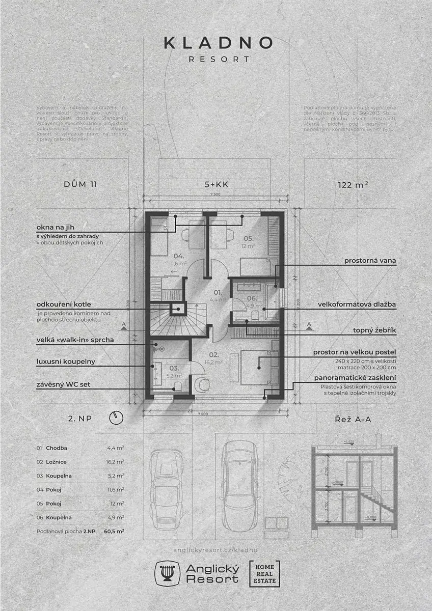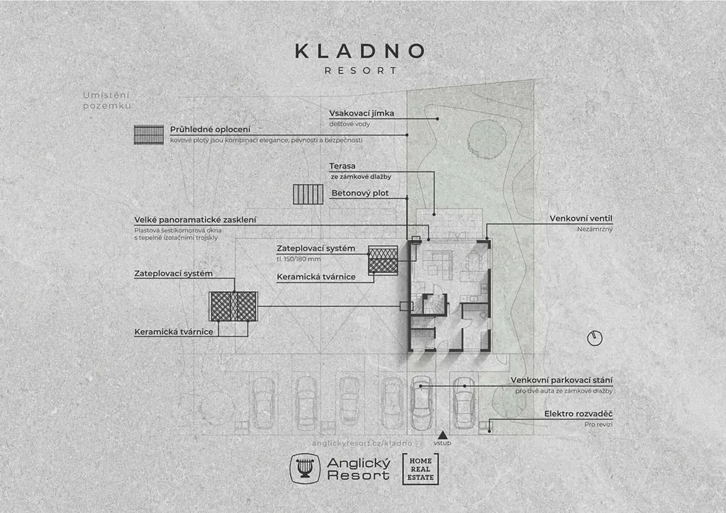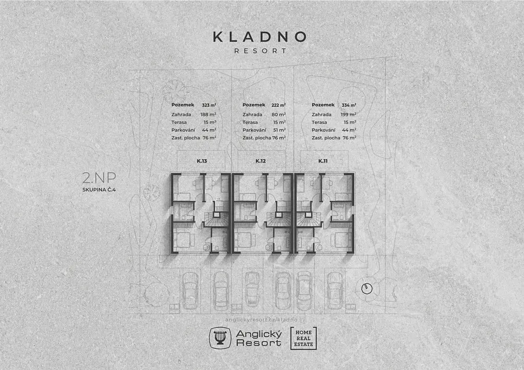 Představujeme Vám moderní řadový dům o výměře 122 m2 a dispozici 5+KK s pozemkem o velikosti 334 m2 v novém projektu KLADNO RESORT od renomované developerské společnosti Anglický Resort.