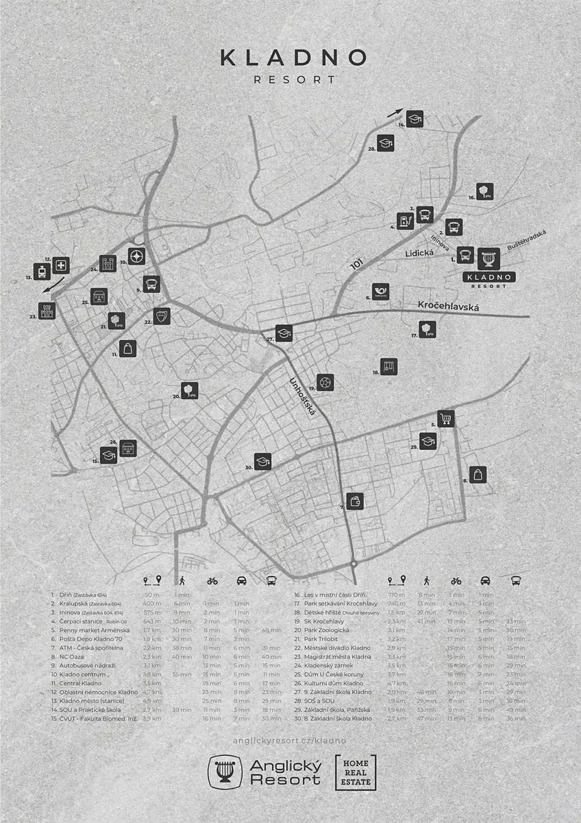 17) dynamicky rostoucí oblast v dojezdové vzdálenosti Prahy. Rozsáhlá revitalizace brownfieldů, výstavba nového obchvatu na D6, plánovaný severní pražský okruh a připravovaný rychlovlak Praha–Kladno činí z této lokality jedno z nejperspektivnějších míst pro moderní rodinné bydlení v blízkosti přírody.