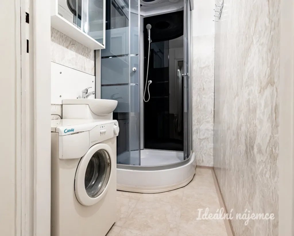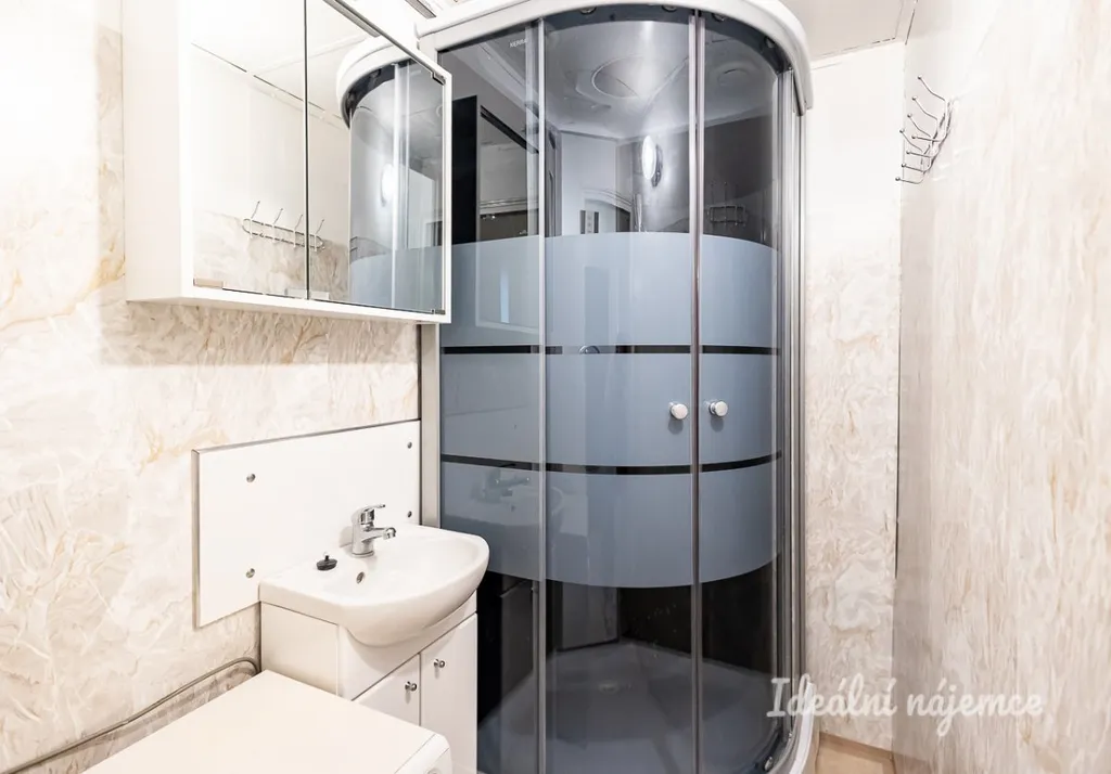Byt se nachází ve 2.patře cihlového domu. Skládá se ze vstupní chodby, samostatné toalety, koupelny se sprchovým koutem, umyvadlem a pračkou.