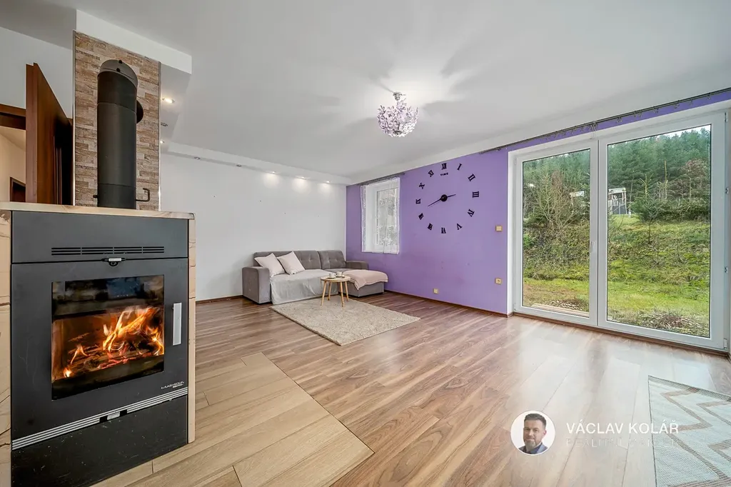 Na zahradě jsou plodící ovocné stromy a hned za pozemkem se nachází dětské hřiště. Jen pár metrů od domu začíná les, kam si můžete vyrazit na procházku.