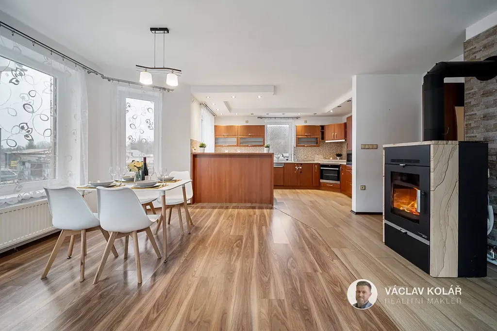 Dům je prostorný a nabízí velkorysou dispozici 4+kk. Pod jednou střechou je také garáž a technická místnost, což oceníte v každodenním provozu.