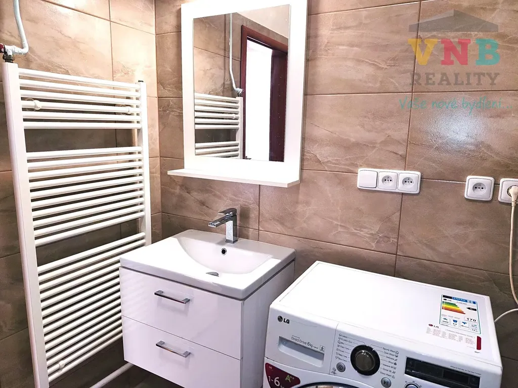 Koupelny jsou moderně vybaveny rohovou vanou, dvěma sprchovými kouty, pračkou, v jedné koupelně je WC, druhé WC je samostatné. V předsíni jsou umístěny dvě velké skříňové sestavy poskytující značný úložný prostor.