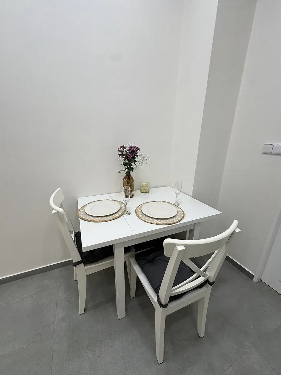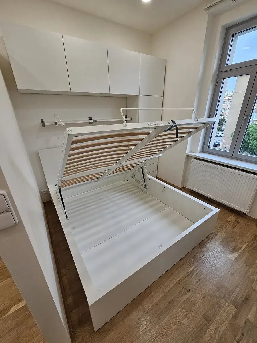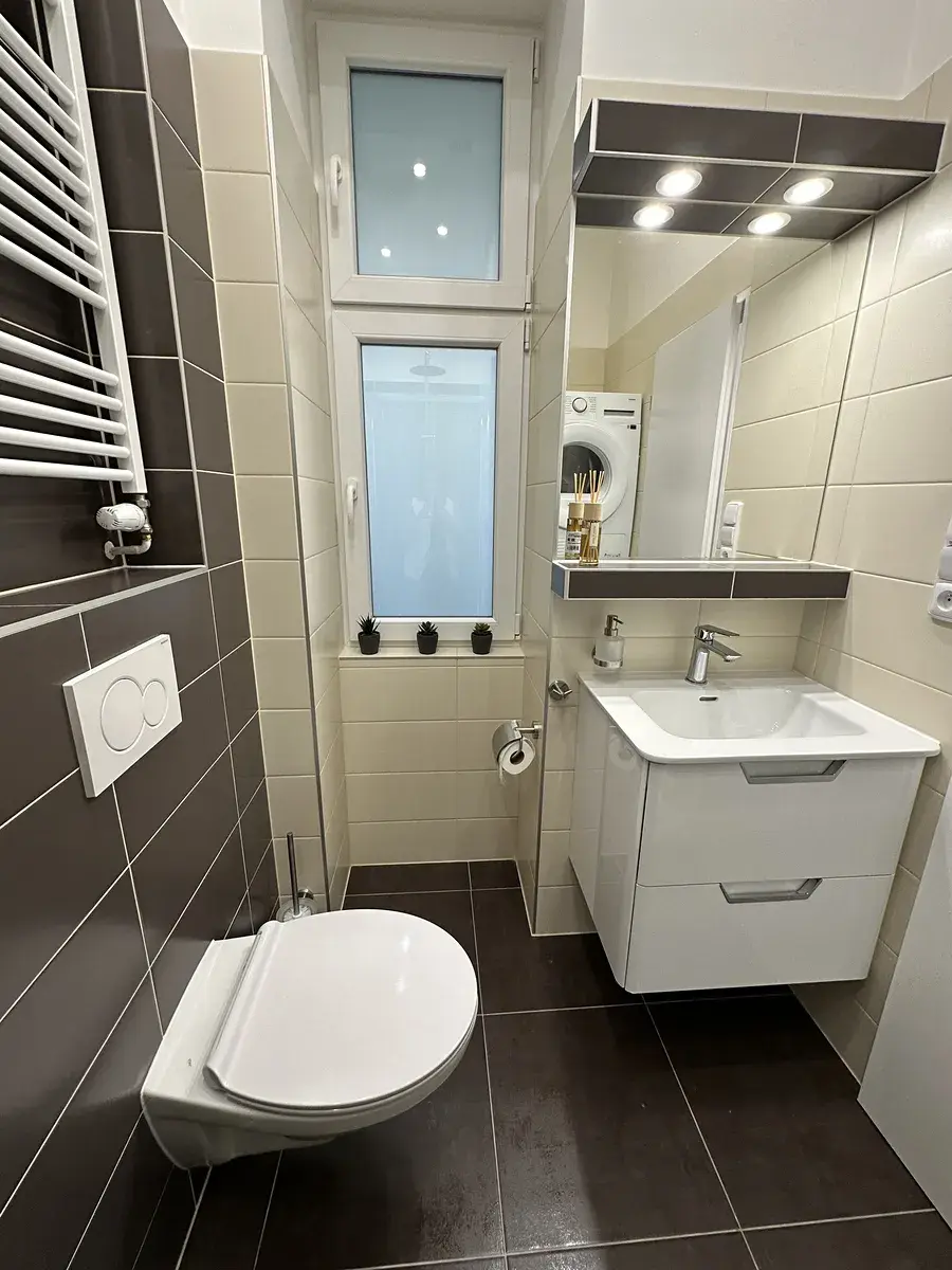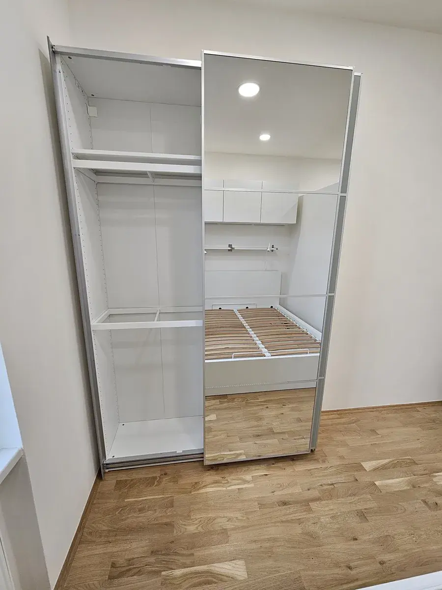 Interiér prošel kompletní rekonstrukcí, při které byly použity kvalitní materiály. Koupelna je vybavena pračkou. V kuchyni najdete novou linku se všemi vestavěnými spotřebiči: lednicí s mrazákem, myčkou, mikrovlnnou troubou, klasickou troubou, digestoří a indukční varnou deskou. Součástí vybavení je také malý jídelní stůl se židlemi a pohovka v obývací části. Spací zóna s manželskou postelí je oddělena příčkou, což zajišťuje více soukromí. Byt je připraven k okamžitému nastěhování.