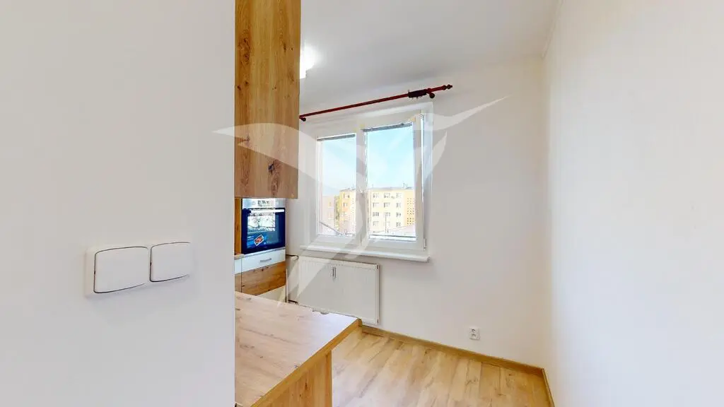 Nemovitost o velikosti 54 m2 se nachází v 4. NP panelového domu s výtahem a skládá se z předsíně, pokoje včetně kuchyňské linky, samostatného pokoje, průchozího pokoje, koupelny a samostatné toalety a součástí je i zděný sklep umístěný v suterénu domu. Součásti vybavení je kuchyňská linka se spotřebiči (myčka, elektrická trouba, sklokeramická deska + digestoř). Vytápění a teplá voda jsou zajištěny dálkově. Energie se přepisují na nájemce.