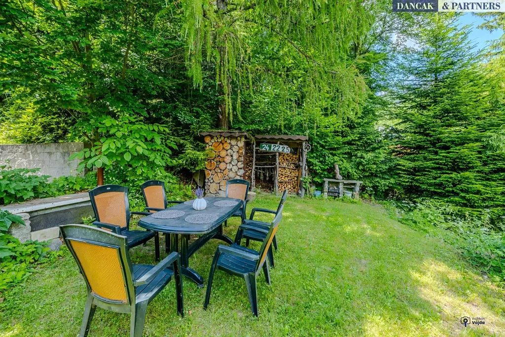 K prodeji rekreační objekt s přilehlým pozemkem v malebném prostředí podhorské vesnice Čeladná. Přístup k hranici pozemku je zajištěn po obecní, zpevněné komunikaci. Chata je situována na vyvýšeném místě východně orientovaného svažitého pozemku a je obklopena vzrostlou vegetací, převážně smrkových porostů. Najdete zde lesní potůček, přírodní ohniště, terasu s posezením a venkovní krb pro relaxaci a chvíle odpočinku v přírodě. Nasbírat si můžete vlastní hřiby a z ovocných stromů sklidit švestky, třešně a hrušky. Na pozemku se nachází 2 kopané studny s pitnou vodou.