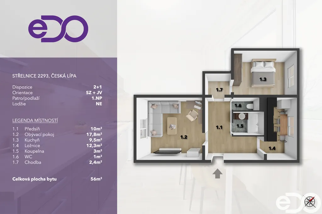 Nabízíme k prodeji byt o dispozici 2+1 a celkové výměře 56 m², který se nachází na adrese Střelnice 2293, Česká Lípa.