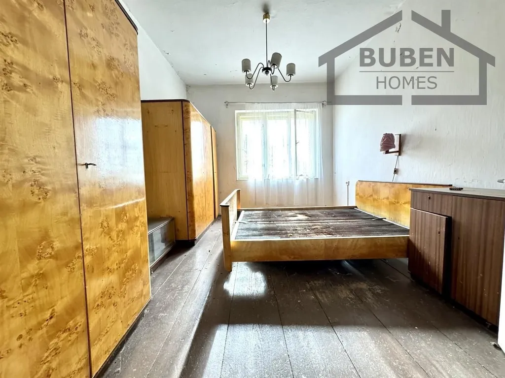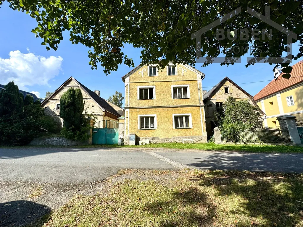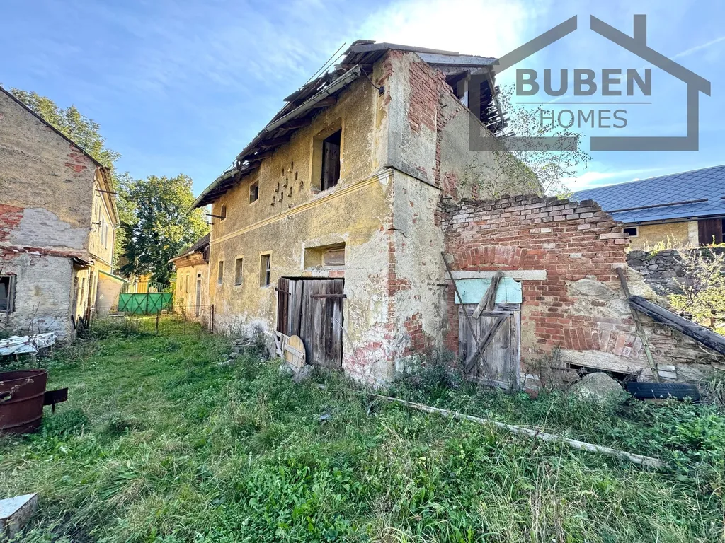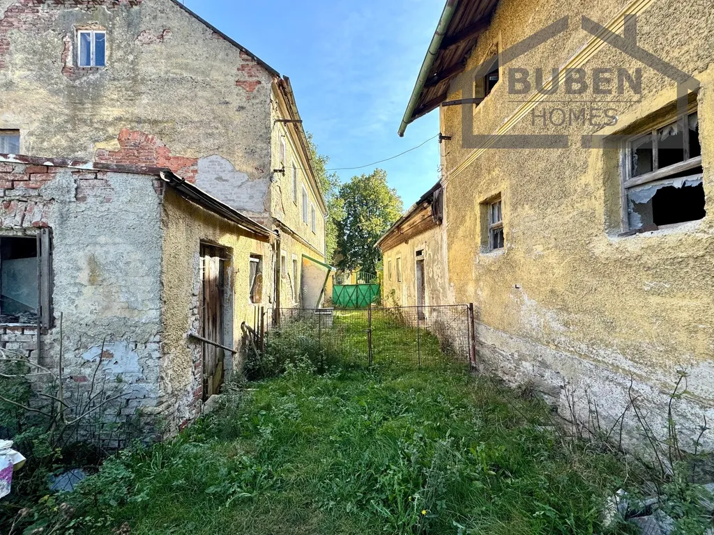 Prostřední dům je dvoupodlažní (dvougenerační) a je částečně podsklepen. Před třemi lety byl ještě využívám k bydlení. Je napojen na obecní vodovod, kanalizaci, elektřinu. U domu se nachází plynová přípojka (plyn do domu není zaveden). Podlahová plocha tohoto domu je cca 200m2 (každé patro cca 100 m2), + sklep, + půda (cca 90 m2). V přízemí je možné vybudovat bytovou jednotku 3+1 s koupelnou a WC, v patře je možné vybudovat samostatnou bytovou jednotku 4+1. Podkroví je vhodné k vybudování půdní vestavby. Dům napravo je z konce 18. století. V minulosti sloužil jako budova obecního úřadu. Stavbu je možné taktéž po rekonstrukci využít k bydlení či k podnikání. Dům po levé straně, je určen spíše k demolici.