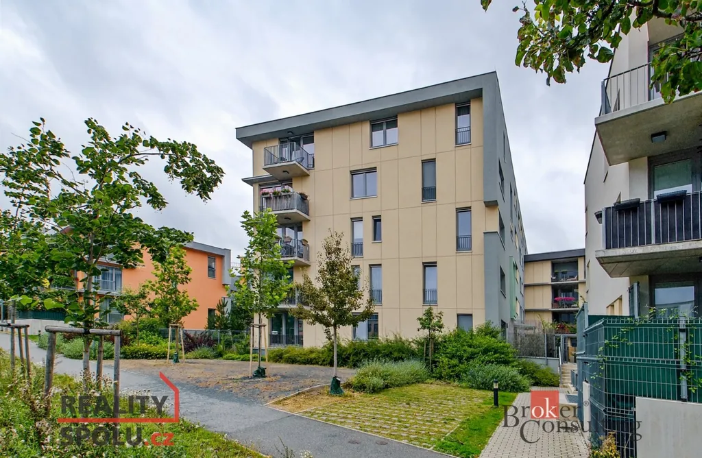 Dispozice bytu: obývací pokoj s kuchyňským koutem – kuchyňská linka zn. Ikea se spotřebiči (lednice, sklokeramická deska, el. trouba, digestoř), předsíň (4 m²) s vestavěnou skříní, koupelna (4,8 m²) je prostorná se sprchovým koutem, umyvadlem, toaletou a prostorem na pračku (není součástí). Výhled z bytu je do společného atria se spoustou zeleně, nedaleko se nachází park Židovské pece. Orientace oken na východ a na jih, okna jsou vybavena interiérovými žaluziemi a předokenními roletami.