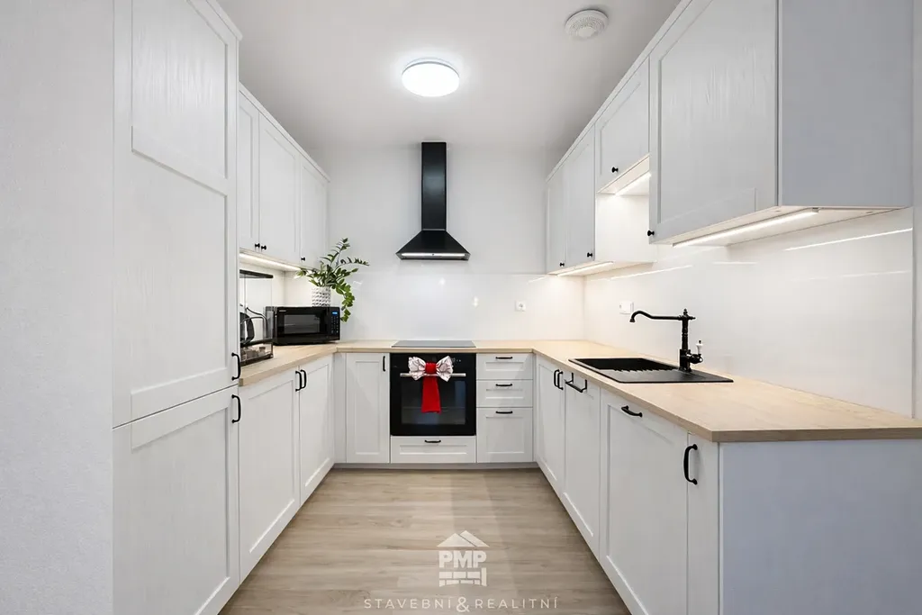 Byt disponuje prostornou terasou, která poskytuje příjemný prostor k relaxaci a posezení a je přístupná z obou obytných místností. Dispozičně je byt řešen jako obývací pokoj s kuchyňským koutem, samostatnou ložnicí, nadstandardně prostornou koupelnou s vanou i sprchovým koutem, samostatným WC a vstupní chodbou. Kuchyňská linka je vybavena vestavěnými spotřebiči – lednicí, myčkou nádobí, troubou, indukční varnou deskou a digestoří. Nábytek není součástí pronájmu.