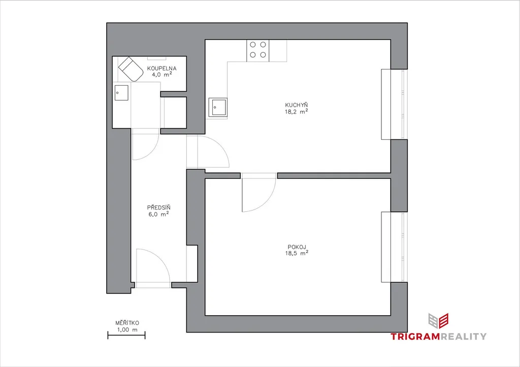 Dispozice jsou patrné z přiloženého půdorysu. Byt nabízí kuchyňský kout