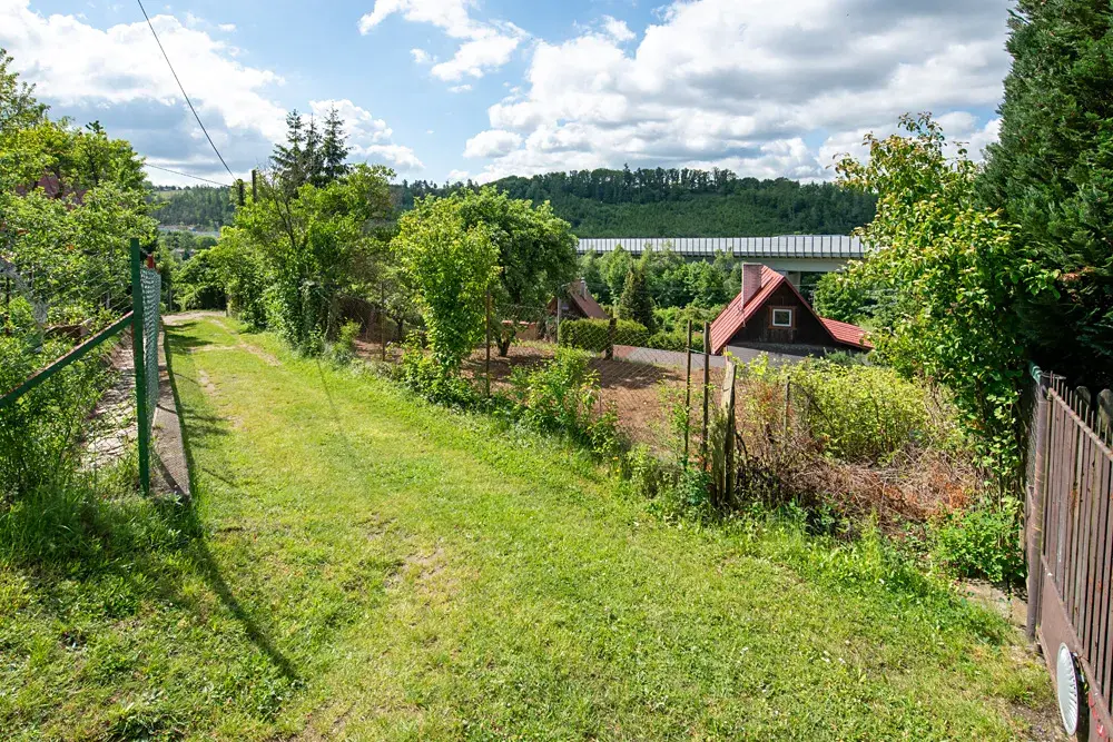 Na pozemku není aktuálně žádná stavba, ale součástí prodeje je projektová dokumentace a platné stavební povolení na výstavbu jednopodlažní rekreační chaty s pultovou střechou a zastřešenou verandou.