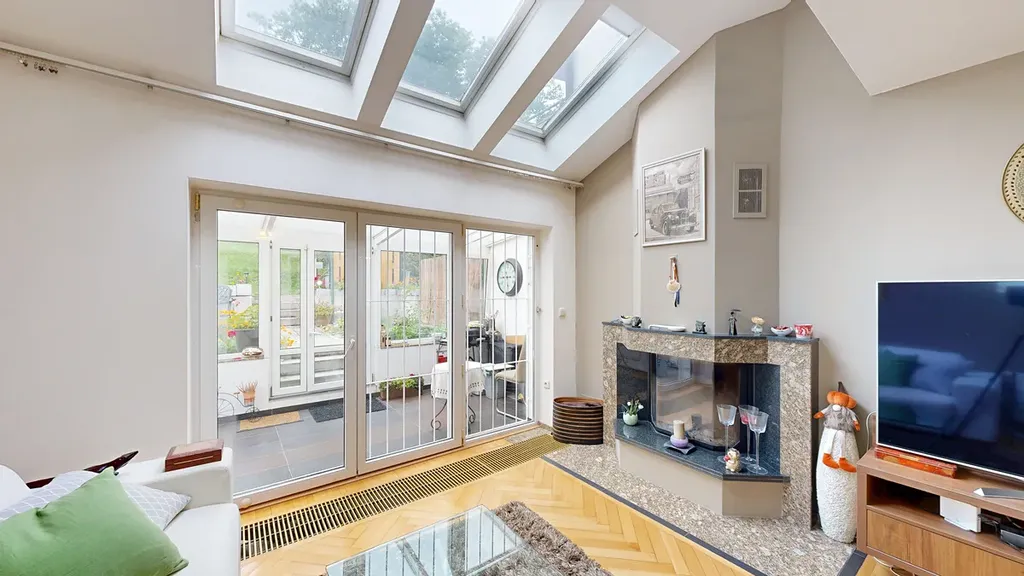 Na západní straně je přístup na terasu (11,8 m²) a následně do zahrady o velikosti 188 m².