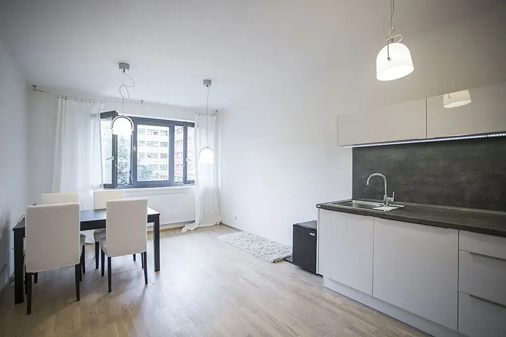 Rádi Vám zprostředkujeme pronájem atelieru určeného k bydlení (reálně pěkného bytu 1+kk) v novostavbě v komplexu Garden Towers v Olšanské ulici.