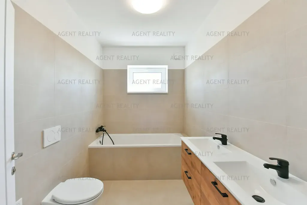 Byt se nachází v novostavbě bytového domu o dvou jednotkách s vlastním vchodem a oddělenou terasou. Vlastní parkovací místo pro tři vozy na pozemku před vchodem do domu.
