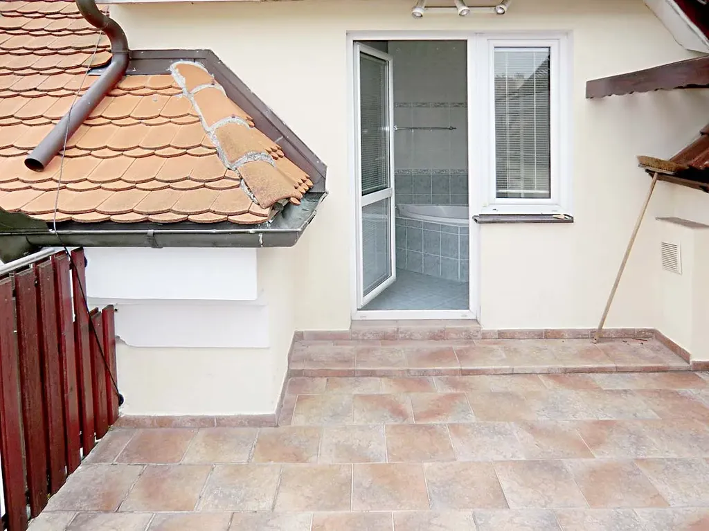 - 3NP (cca 41,6 m2): pokoj č. 4 s malou šatnou (13,5 m2), koupelna s rohovou vanou (9,8 m2), WC (1,3 m2), schodiště (4,10 m2) a terasa (12,9 m2).