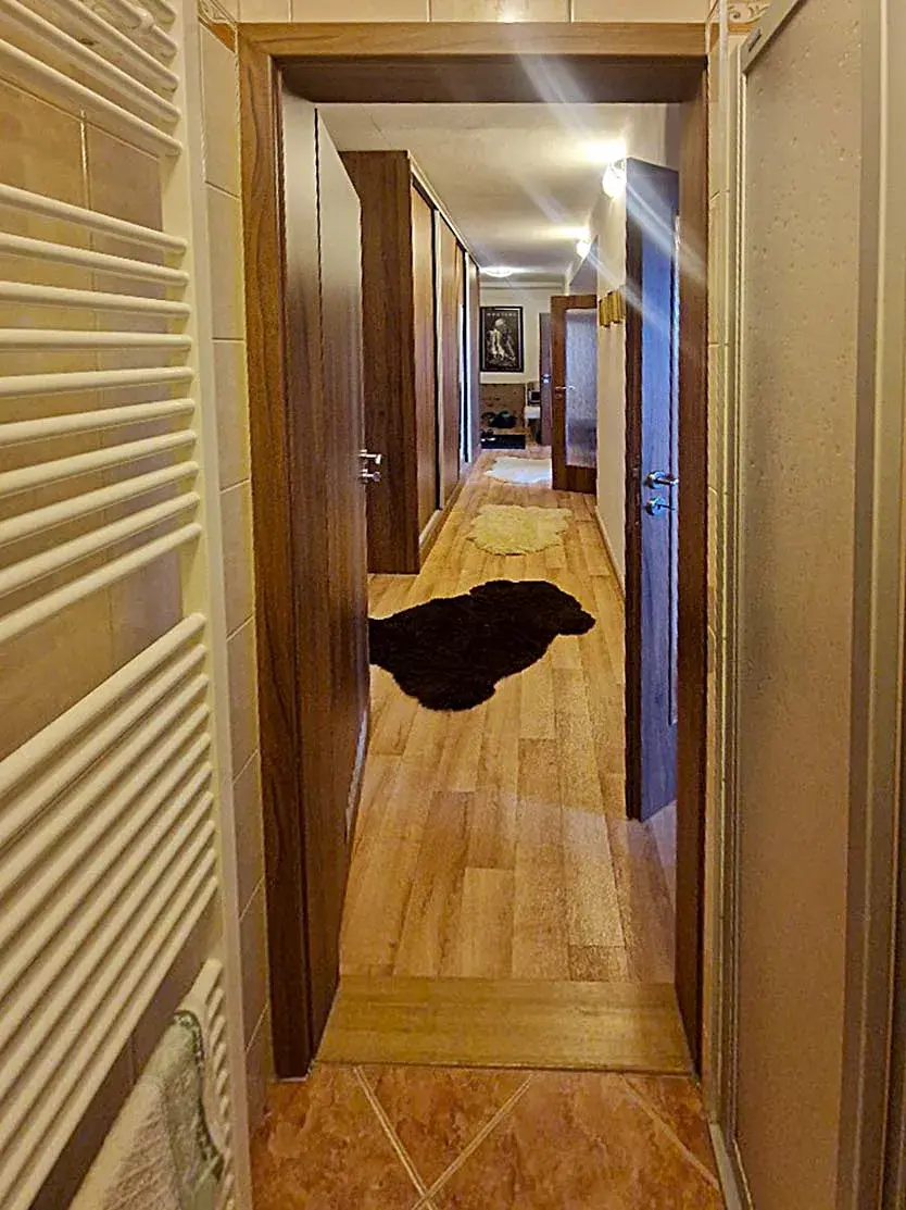 Nabídka prodeje bytové jednotky 2+1 (59,7 m2) + balkón (cca 2,3 m2) a sklepní kóje (6,1 m2) m2), která je umístěna v posledním 4.patře cihlového domu s výtahem v oblíbené plzeňské městské části Slovany, v klidné ulici Ořechová. Velkou předností bytu jsou samostatné, prostorné a slunné místnosti, velké množství úložného prostoru v předsíni a rekonstrukcí upravena koupelna s toaletou zajišťující bezpečí a praktičnost osobám s pohybovým omezením. Byt je dispozičně členěný na prostornou předsíň, obývací pokoj se vstupem na balkón, ložnici, kuchyň, samostatné WC a koupelnu. Okna jsou plastová s vnitřními žaluziemi a jsou orientovaná na J-stranu, na podlaze jsou položeny parkety v kombinaci s dlažbou a kvalitním PVC s designem dřeva. Po rekonstrukci je v bytě kuchyň, koupelna, WC a předsíň vč. osazení v celém bytě nových interiérových dveří s obložkovou zárubní a nových plastových oken. El. rozvody jsou nové pouze v rekonstruovaných místnostech, jinak původní stav. Byt je vybaven kuch. linkou se zabudovanými spotřebiči (myčkou, pračkou se sušičkou, el. varnou deskou, el. troubou, digestoří) a případně též lednicí a mikr. troubou. V předsíni je umístěna prostorná vestavěná skříň vyrobená na míru s posuvnými dveřmi se zrcadlem, skýtající velké množství úložného prostoru. Koupelna se sprchovým koutem je stejně jako toaleta vybavena bezpečnostními prvky pro osoby s pohybovým omezením. Ohřev vody je zajištěn plynovou karmou (bude z FO v tomto roce vyměněna za el. bojler) a byt je vytápěn ÚT. Prostorná sklepní kóje (6,1 m2) je umístěna v suterénu domu, ve kterém je též kryt CO. Bytový dům má nový výtah a střechu po generální opravě v r. 2020, fasáda zatím není zateplená. Auto snadno zaparkujete před domem. V blízkosti domu je veškerá občanská vybavenost a výborná dostupnost do centra města či vlakového nádraží TRAM č.1 (do 7min. jízdy). Měsíční výdaje spojené s užíváním bytu jsou cca 4.050,-Kč vč. platby do FO + el. a plyn. Platba do FO je 25,-Kč/m2/měsíčně. Lokalita této nemovitosti je vhodná pro každého, kdo chce být na dosah centra města a zároveň si potrpí na svůj klid. Neváhejte a přijďte si byt prohlédnout, ráda Vás uvítám na osobní prohlídce.