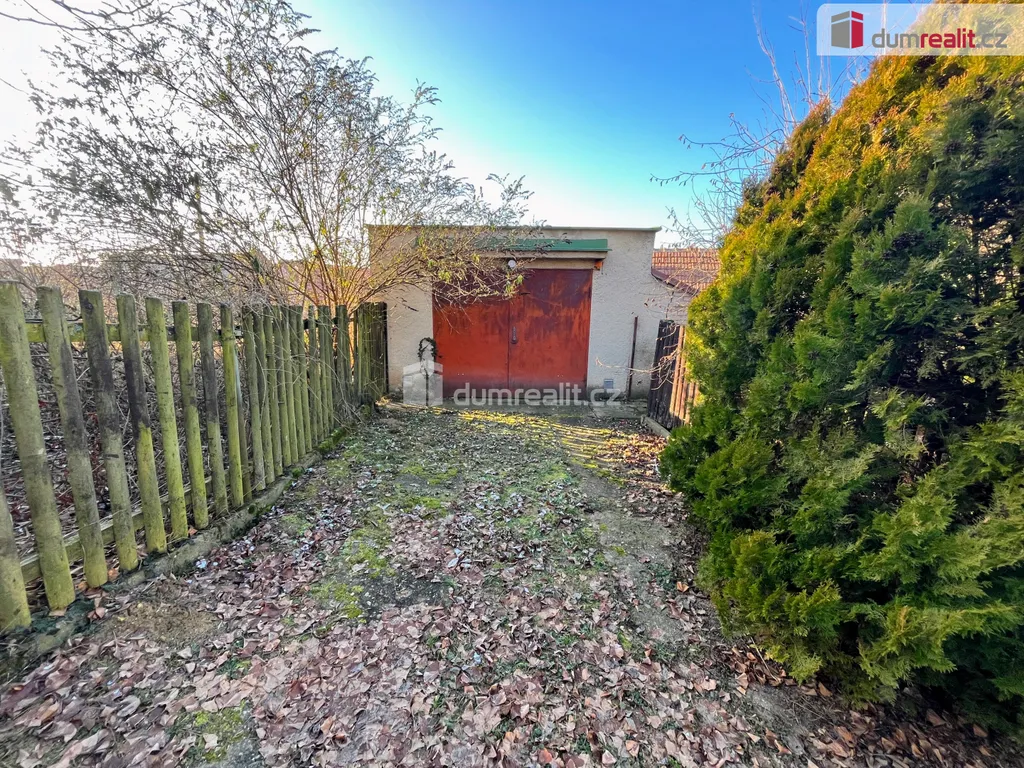 Za domem se nachází garáž a plocha vhodná k parkování. Vedle domu je oplocená zahrada. Celková plocha pozemku činí 465 m².