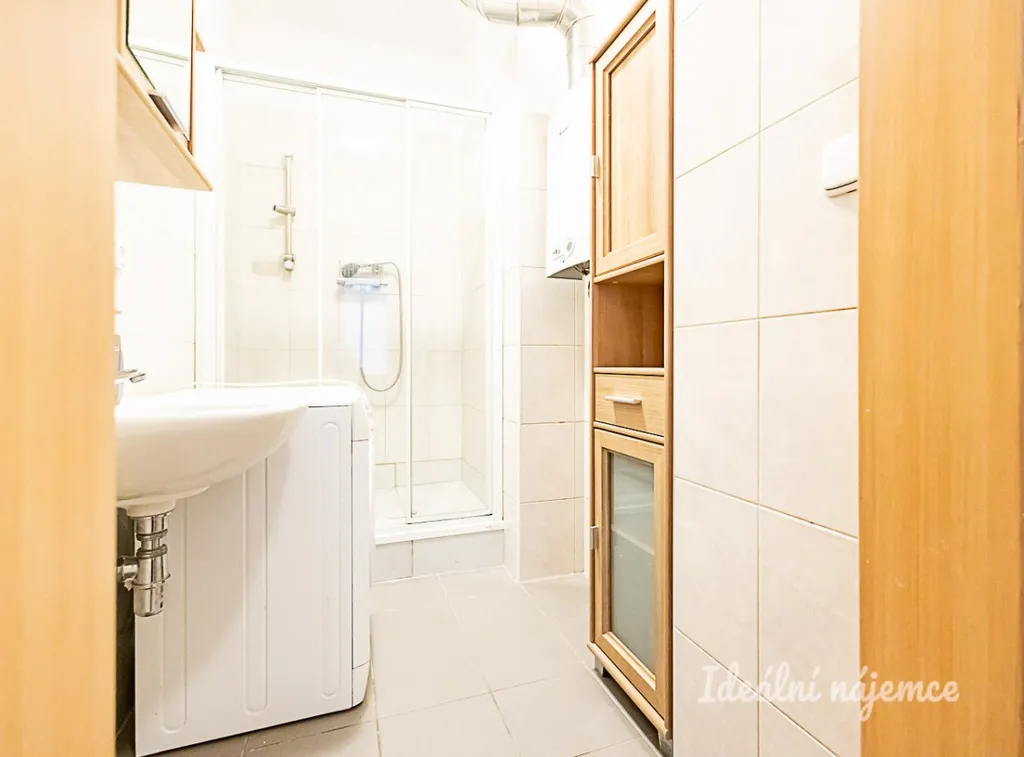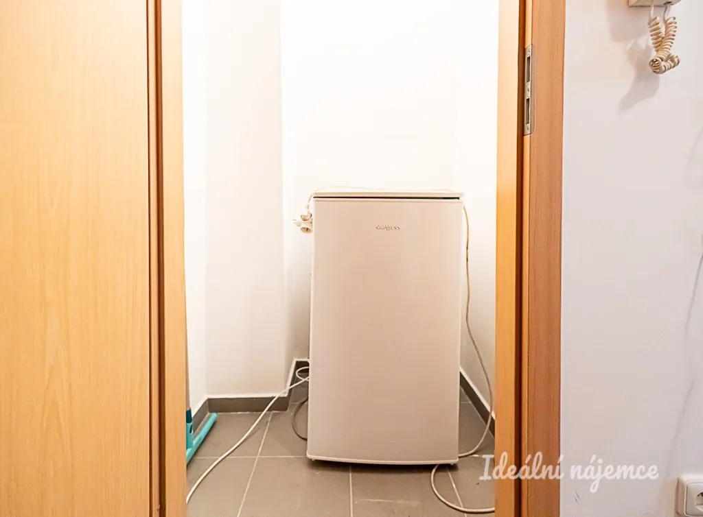 Byt se nachází v 4.patře cihlového domu s výtahem. Skládá se ze vstupní chodby, ložnice, samostatné toalety, koupelny zařízené sprchovým koutem, umyvadlem a pračkou.