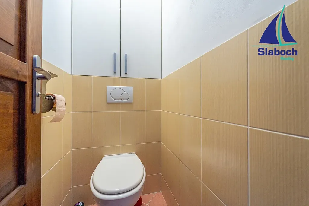 V domě 3 koupelny a 3 toalety, dům je z části podsklepen, parkování pro 3 auta.
