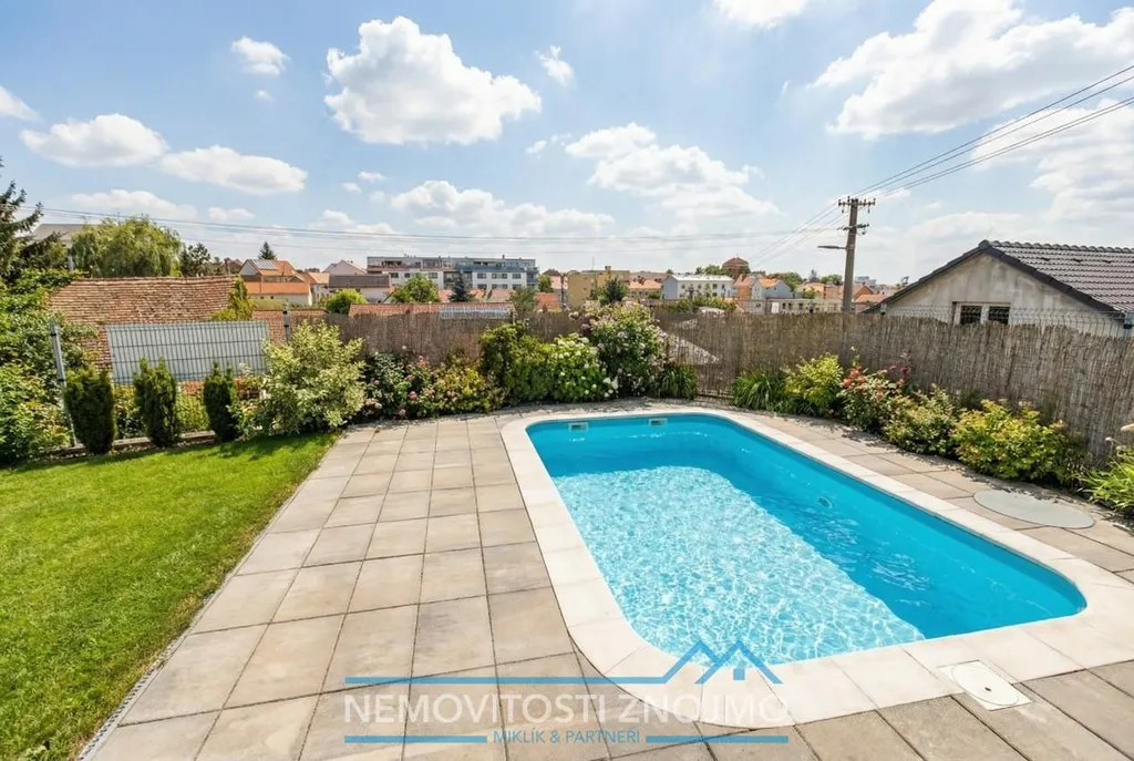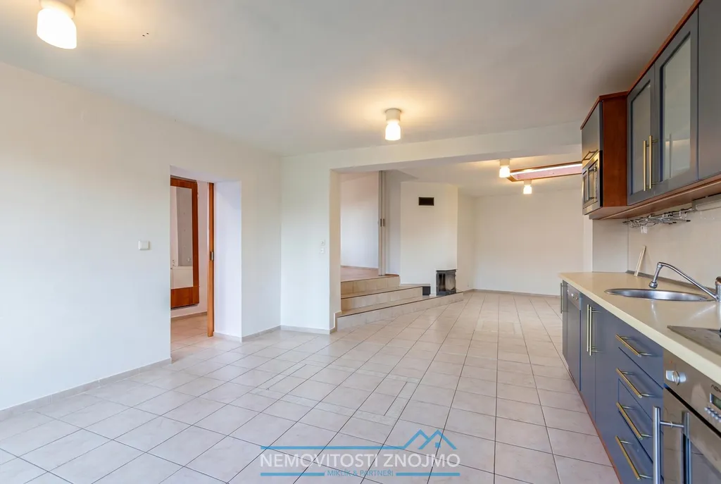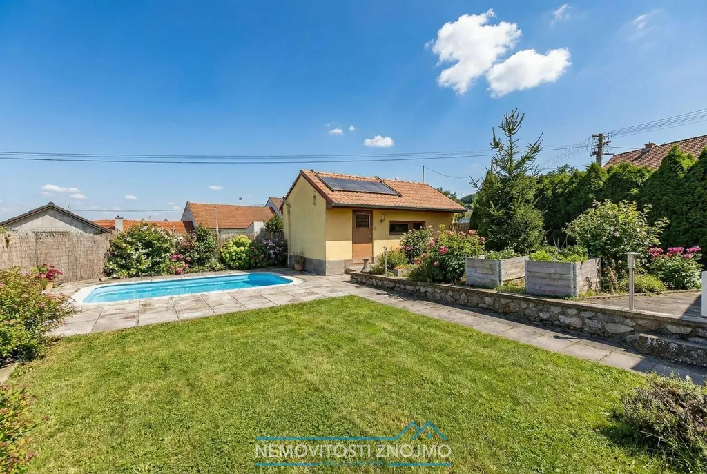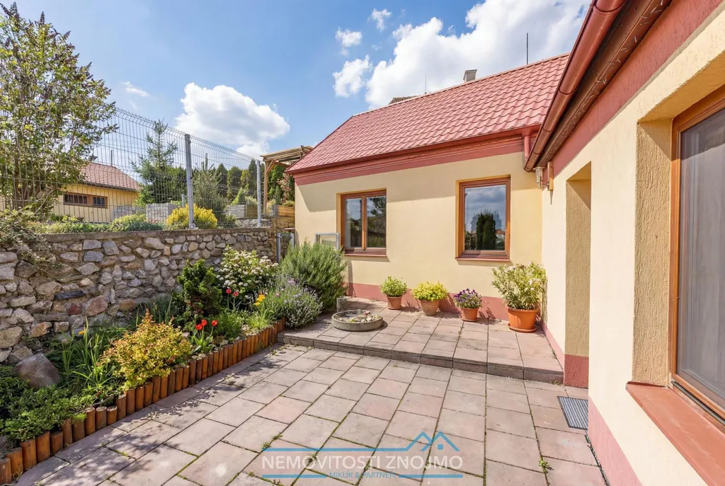 K prodeji nabízíme rodinný dům 3+kk, s úžasným zázemím v podobě zahrady, bazénu, sklepa i prostorné garáže. Ze zahrady je úžasný výhled na celé město Miroslav, které se nachází napůl cesty mezi Znojmem (20 min) a Brnem (30 min). Dům sestává z následující dispozice: