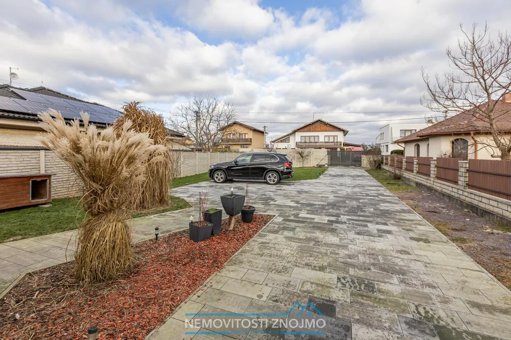 Před domem je vydlážděný příjezd pro 3 vozy již na vlastním pozemku. Celková plocha pozemku činí 743m2, dům je napojený na všechny inženýrské sítě, včetně kanalizace.