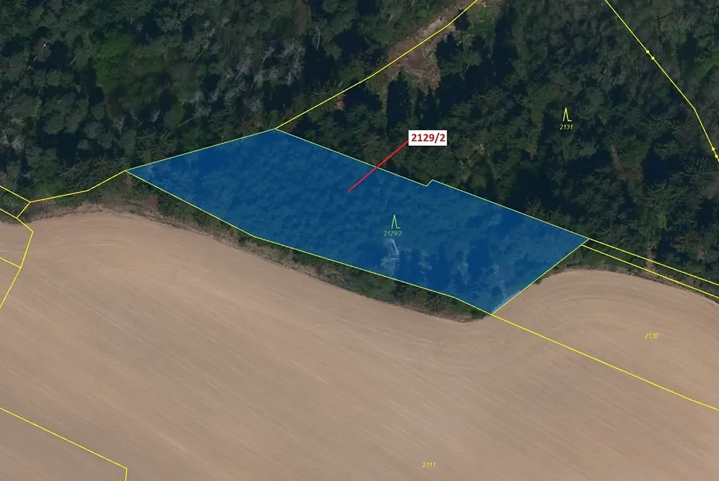 Lesní pozemek o výměře 3636 m2, parcelní číslo 2129/2, podíl 1/1, katastrální území Štítné, obec Žirovnice, obec s rozšířenou působností Pelhřimov, okres Pelhřimov, Kraj Vysočina. Částečně po těžbě.