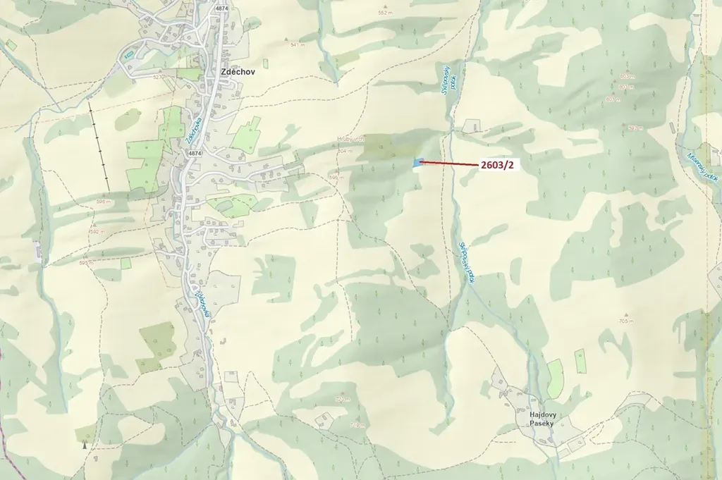 Lesní pozemek o výměře 1036 m2, parcelní číslo 2603/2, podíl 1/1, katastrální území Zděchov, obec Zděchov, obec s rozšířenou působností Vsetín, okres Vsetín, Zlínský kraj.