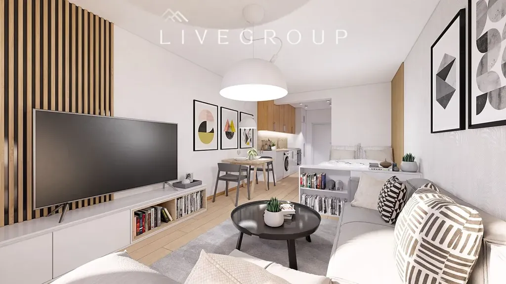 Byt s orientací na jih tvoří prostorná předsíň s místem pro vestavěnou skříň, obývací pokoj spojený s kuchyňským koutem i místem pro vybudování částečně oddělené ložnice o celkové velikosti 23,40 m2, koupelna se sprchovým koutem 2,62 m2 a samostatná toaleta 0,95 m2.