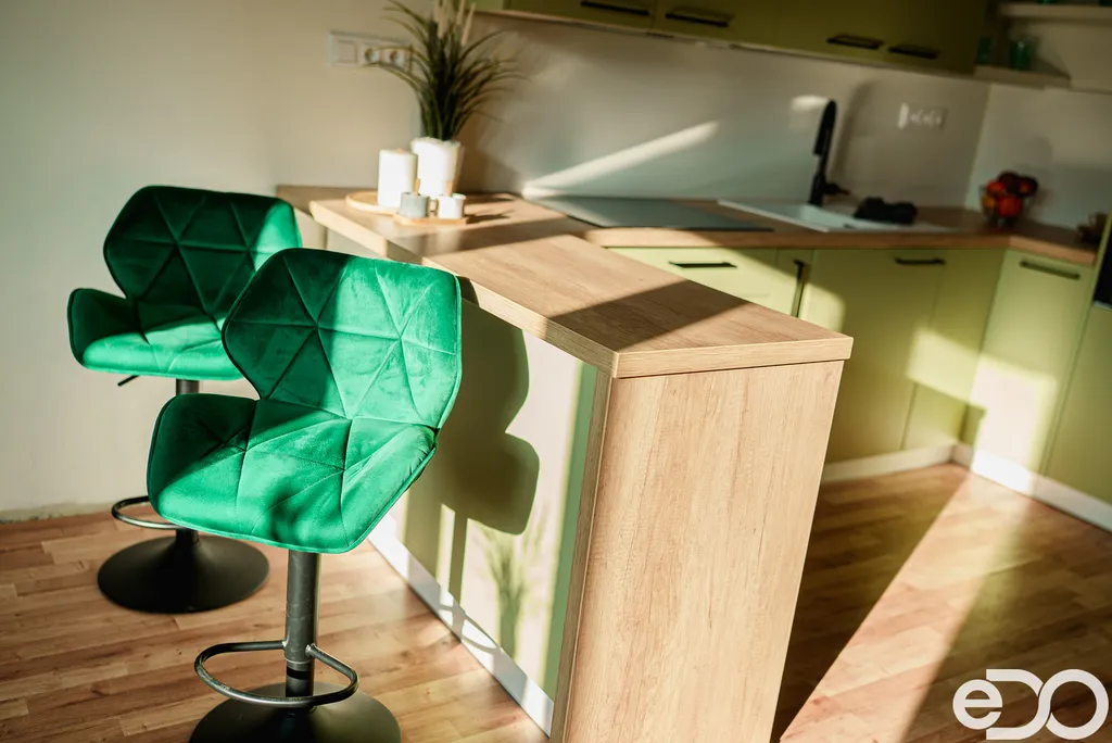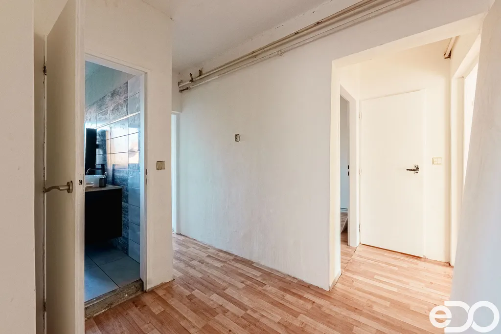 Dispozice bytu je řešena logicky, s jasným oddělením obytné a klidové části. Vstupní část plynule navazuje na střed dispozice, odkud je přístup do jednotlivých místností. Dominantou bytu je obývací pokoj s kuchyňským koutem o výměře 28,8 m², orientovaný na jih. Kuchyň je propojena s obytným prostorem a nabízí dostatek místa pro kuchyňskou linku i jídelní část. Součástí této místnosti je také krb, který dotváří charakter obytné části, v současné době však není využíván. Na obytný prostor navazuje prostorný pokoj o výměře 23,5 m², v současnosti využívaný jako ložnice. Na opačné straně bytu se nachází samostatný pokoj o výměře 14,8 m², vhodný jako dětský pokoj, pracovna či pokoj pro hosty.