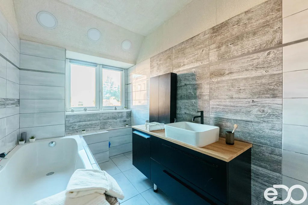 V bytě byla zahájena rekonstrukce, která se týká především kuchyňské části a koupelny. Ostatní místnosti bytové jednotky jsou v původním stavu, včetně elektroinstalace. Kuchyňská část prošla započatou rekonstrukcí – byly zde provedeny nové omítky, připraveny nové elektrické rozvody a osazena nová kuchyňská linka včetně spotřebičů. Koupelna o výměře 3,5 m² prošla částečnou rekonstrukcí, která zahrnuje nové obklady a dlažby, sprchový kout, umyvadlo a vodní podlahové topení. Součástí rekonstrukce je také nový rozvaděč elektroinstalace umístěný přímo v bytové jednotce. Součástí bytu je rovněž samostatné WC o výměře 1,5 m².