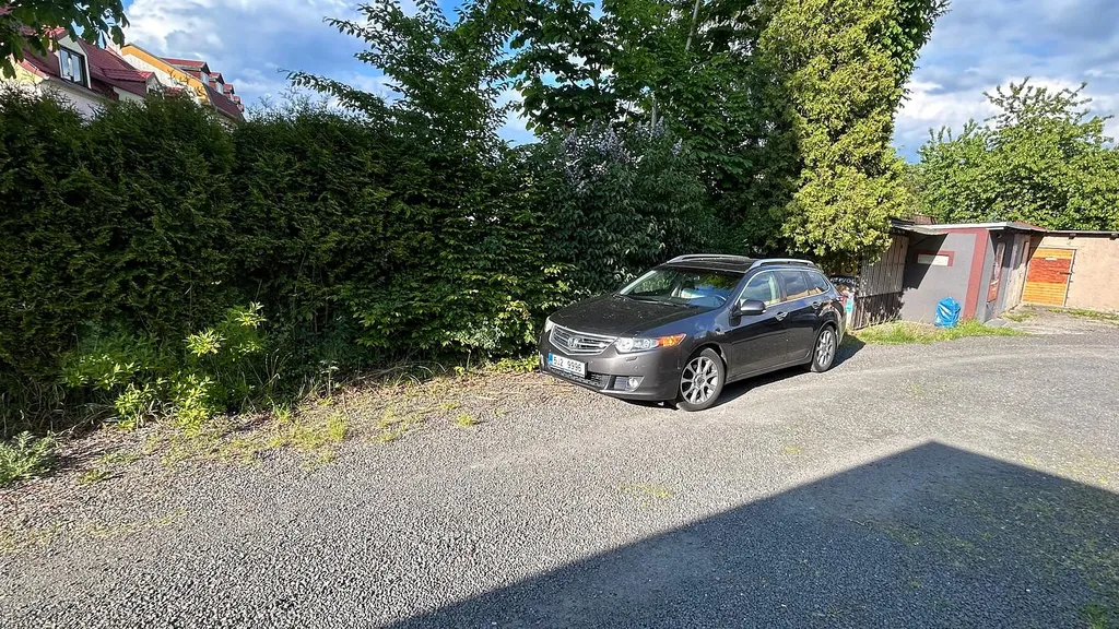 Vyhrazené parkovací stání na dvoře. Dvůr se uzavírá branou s pohonem na ovládáni.