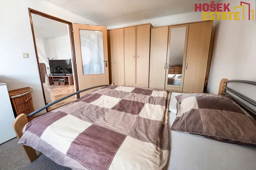 Nabízený byt je umístěn v druhém nadzemním podlaží řadového patrového rodinného domu, ve kterém se nachází dvě samostatné bytové jednotky, prostorný sklep a garáž. Za domem je uzavřený dvůr s dílnou a zahradou. Celková plocha pozemku činí 533 m² a tento prostor mohou nový majitelé využít k zahradničení, chovu drobných zvířat nebo jiným aktivitám.