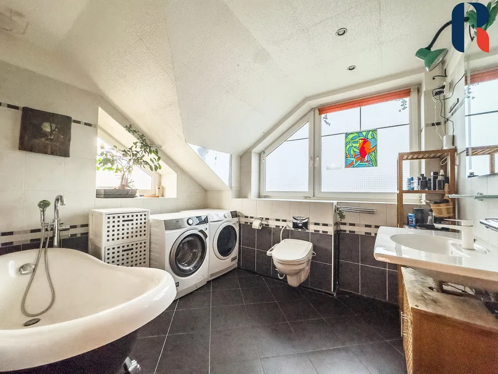 Praktická dispozice 4+1 se 126 m2 podlahové plochy (do které není započítána pochozí půda), zajišťuje pohodlí a komfort pro celou rodinu. V přízemí se nachází velkorysý obývací pokoj (35 m2) s krbem, kuchyň, koupelna se sprchovým koutem, technické zázemí, 2xkomora. V patře jsou 3 pokoje, aktuálně využívané jako 2 ložnice a pracovna. Dále koupelna s vanou a komora. Z chodby je přes vyklápěcí dveře přístup na zpevněnou, pochozí půdu. Půda je zateplená kombinací sklovinové vaty a foukané izolace. Ideální místo pro uskladnění všech mimo sezónních věcí.