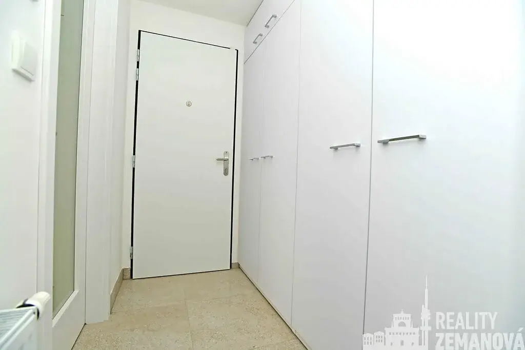 Byt je nabízen bez nábytku, k dispozici jsou však vestavěné skříně v předsíni. Součástí je zánovní kuchyňská linka plně vybavená spotřebiči – myčka nádobí, lednice, mikrovlnná trouba, elektrická trouba a sklokeramická varná deska. V koupelně se nachází pračka, zrcadlo a úložná skříňka.