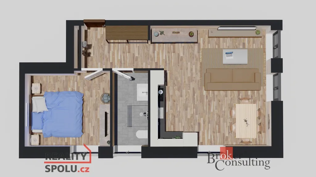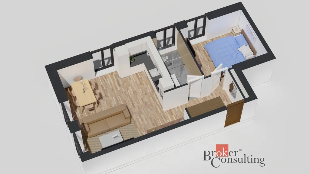 Nabízíme prodej bytu č.6 a dispozici 2+kk o výměře 47,53 m² ve 2. nadzemním podlaží Rezidence Důl Michal.