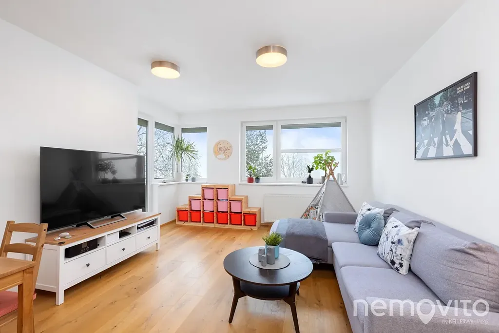 Kompletní rekonstrukce, která proběhla v roce 2021, znamenala především výměnu podlah (dřevěná), novou kuchyni a koupelnu. Byt nyní nevyžaduje žádné investice. Potěší velká prosklená plocha, díky které je velký obývák skutečně světlý (má 26 m2). Výstup na balkon je z obou pokojů, přičemž plocha ložnice je 15 m2. Potěší dohromady 9 m2 skladovacího prostoru. 5 m2 přímo v bytě samotném, 4 m2 ve zděném sklepu.