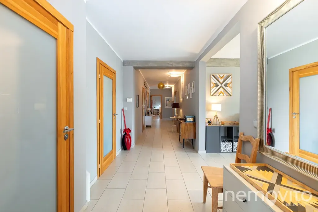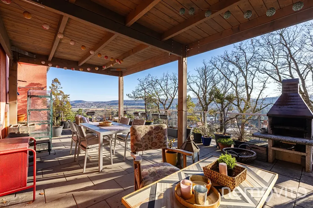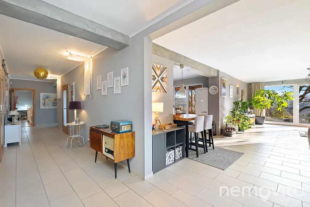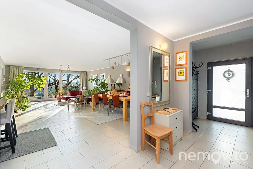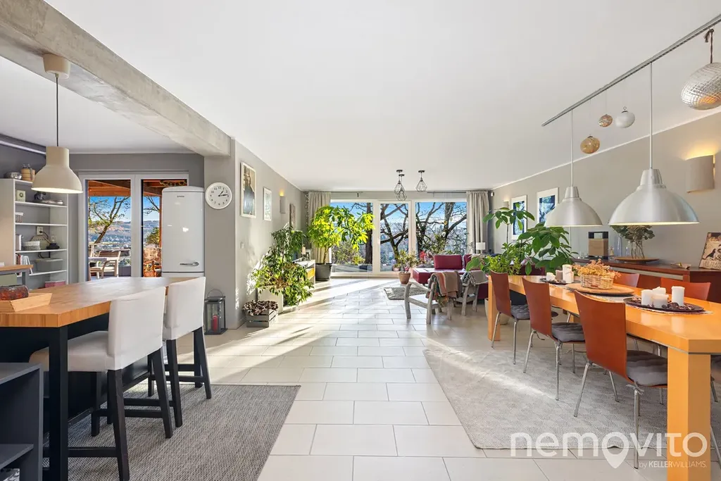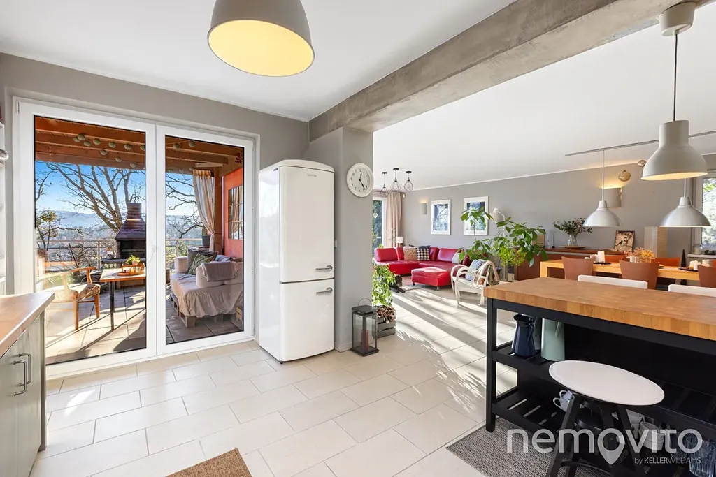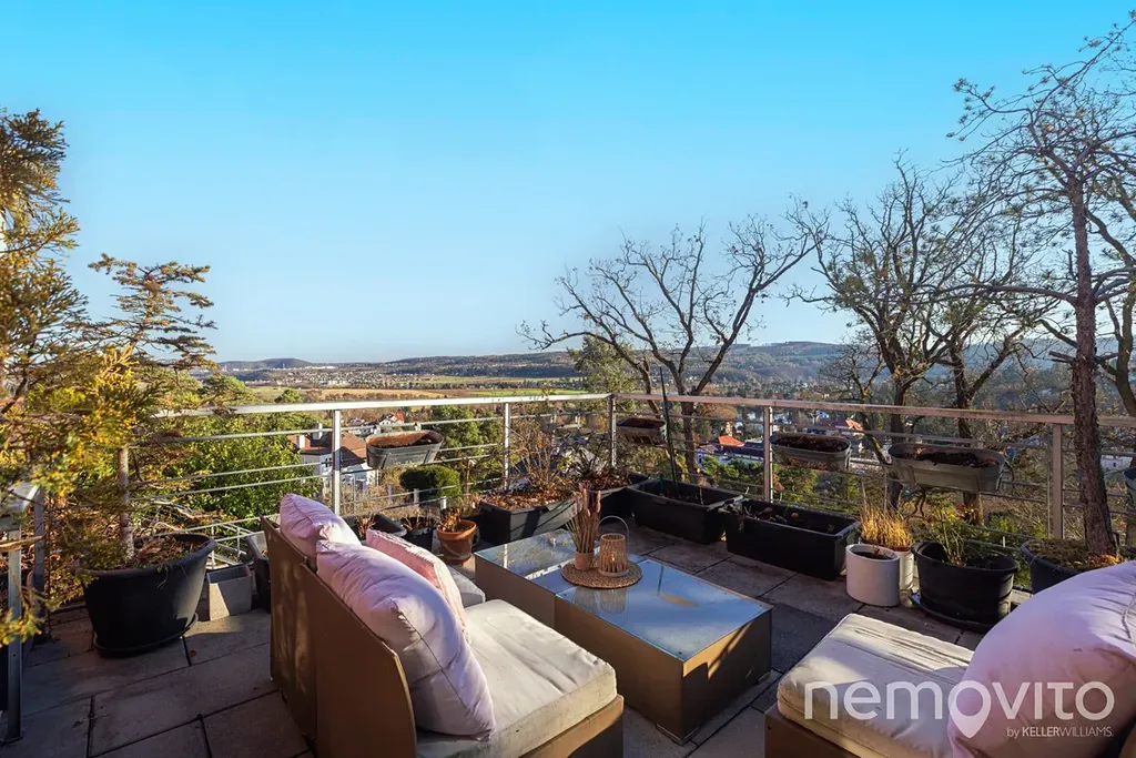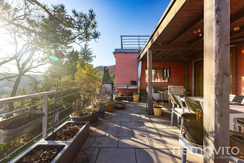 Obrovský byt s fantastickým výhledem na údolí Berounky s jižní orientací, velkými terasami, pozemkem a garáží. Byt prošel v posledních 5 letech kompletní rekonstrukcí, poslední úpravou je výměna všech oken (trojskla) koncem roku 2025. Plochou a komfortem hravě konkuruje rodinnému domu. 4 ložnice, 2 koupelny, a celkově zcela unikátní pojetí na jižním svahu v Černošicích, zhruba 300 metrů od lesa.