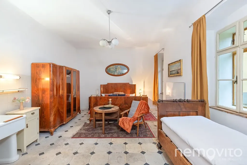 Pokoje jsou tematické, a tak tu naleznete zámecká apartmá, největší "prezidentský" pokoj (Zbraslavice jsou blízko Vysočině, ale ne zas tak moc), socialistický pokoj vhodný k plánování vašeho hospodářství nebo část domu, která je vhodná pro využití k bydlení - dva pokoje z vlastní koupelnou a kuchyní. Koupelny jsou v domě celkem 3, kuchyně mimo zmíněné pak ještě dole ve společenské. Pokoje mají od 16 do 36 m2.