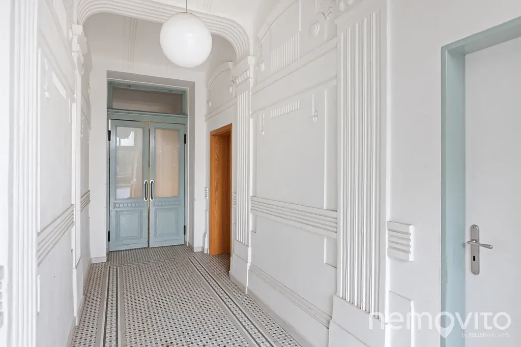 Na ploše přes 50 m2 nabízí celkem 3 místnosti a především 10 m2 venku na terase, na kterou je výstup z obou pokojů. Ty jsou vysoké (2,8 metru), s kompletně novou skladbou podlah a o velikostech 17 a 13 m. Ač se jedná o nebytovou jednotku, na první pohled není ateliér ničím znevýhodněn proti klasice.|