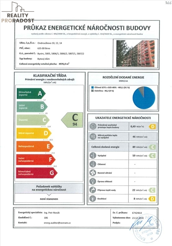 Bytová jednotka 1+1 o rozloze 32,7 m2 v 8.p. /8. panelového domu s výtahem a sklepní kójí v přízemí domu, s dobrou dostupností do centra města nabízí klidné bydlení nedaleko Brněnské přehrady a obory Holedná. V blízkosti domu se nachází veškerá potřebná občanské vybavenost i zastávka MHD (tram, autobus), z obou místností bytu je příjemný výhledem směrem na přehradu a oboru.