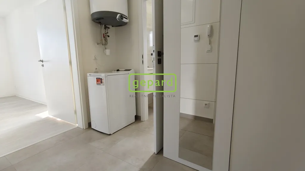 Byt je tvořen předsíní, koupelnou se sprchou a WC, obývacím pokojem s kuchyňským koutem a ložnicí. Je vybaven kuchyňskou linkou se spotřebiči (indukční varná deska, horkovzdušná elektrická trouba, digestoř, mikrovlnná trouba, lednice s mrazákem, pračka), v ložnici je velká šatní skříň. Na oknech jsou předokenní elektricky ovládané žaluzie. Vytápění stropními infrapanely, v koupelně je elektrický žebřík, ohřev vody elektrickým boilerem. V domě je zaveden společný internet od O2. Vhodné max. pro 2 osoby.