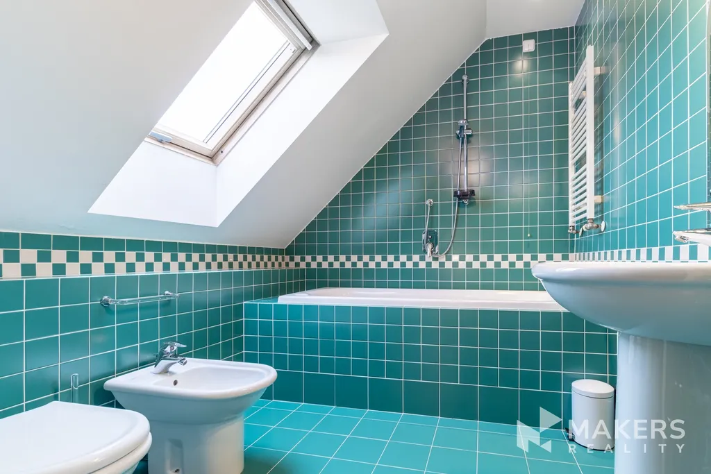 Na prvním podlaží se nachází vstupní hala, prostorný obývací pokoj s jídelním koutem, který je vybaven TV, satelitem a DVD přehrávačem, dále malý balkón, plně zařízená kuchyň otevřená do obývacího pokoje, ložnice s dvoulůžkem a vestavěnou skříní, koupelna se sprchou a dvě komory. Druhé podlaží nabízí halu, další ložnici s dvoulůžkem a vestavěnou skříní a koupelnu s vanou. Styl bytu zdůrazňuje pohodlí a estetiku, interiér doplňují orientální koberce a kvalitní zařízení.