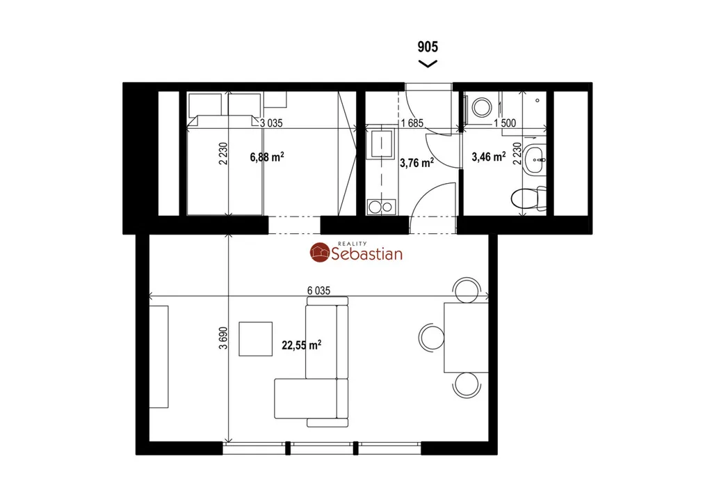 Byt 1+1 v 9. nadzemním podlaží po kompletní rekonstrukci o celkové rozloze 36,18 m2 orientovaný na západní stranu. Byt 1+1 v 9. nadzemním podlaží po kompletní rekonstrukci o celkové rozloze 36,18 m2 orientovaný na západní stranu.